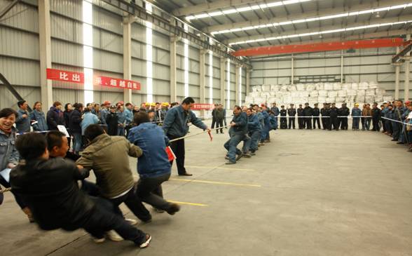 經(jīng)過(guò)賽前的精心準(zhǔn)備和熱身訓(xùn)練,隊(duì)員為集體爭(zhēng)取榮譽(yù),賽出了亮點(diǎn)。拔河比賽是考驗(yàn)一個(gè)團(tuán)隊(duì)凝聚力、合作精神以及組織紀(jì)律性的最好時(shí)機(jī),賽場(chǎng)外不時(shí)爆發(fā)出陣陣熱烈的加油助威聲,場(chǎng)上隊(duì)員鼓足了勁兒,連平時(shí)優(yōu)雅秀麗的女士們此時(shí)也變成了大力士。最后,經(jīng)過(guò)激烈的淘汰賽,長(zhǎng)春炭素有限公司、電解一車(chē)間、電解二車(chē)間、鑄造車(chē)間隊(duì)進(jìn)入了最后的決賽。在比賽中,不少隊(duì)員的手磨破了皮,但卻沒(méi)有人在意,正是這頑強(qiáng)拼搏的精神鑄就了我們物產(chǎn)北川工業(yè)園區(qū)蓬勃向上的生命力。
