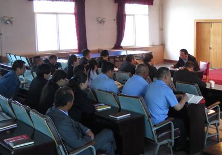 圖為青海省勞動模范毛敏生同志向全體黨員講黨課