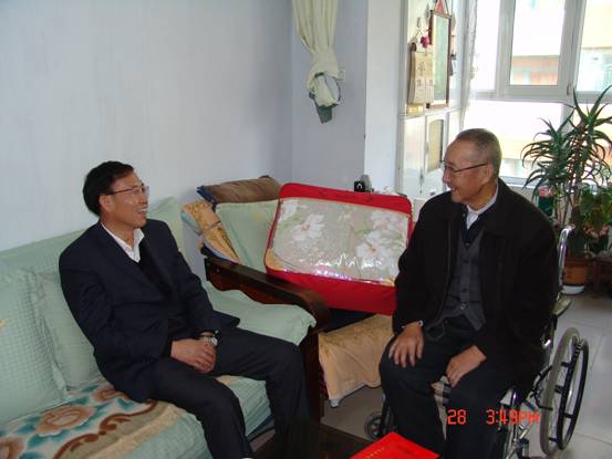 2013年1月28日,春節(jié)來臨之際,省委組織部王志明副部長在省國資委黨委副書記毛占彪、物產集團領導白家林、王仁芬的陪同下,走訪慰問了集團系統(tǒng)生活困難老黨員肖振東。王志明副部長親切地詢問肖振東的身體狀況、生活和家庭情況,發(fā)放了慰問金和慰問品,并希望他保重身體,愉快安度晚年。老黨員肖振東激動地表示感謝黨組織的關懷,感謝上級領導的關心!